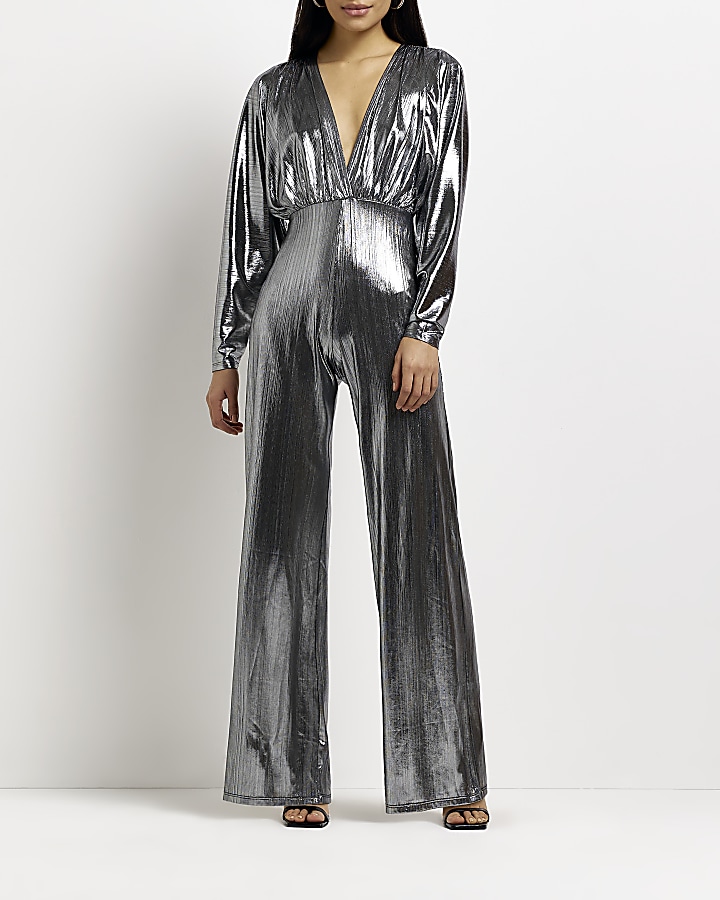 Silver wide leg clearance jumpsuit, CIARA JUMPSUIT METALLIC SILVER clearance
