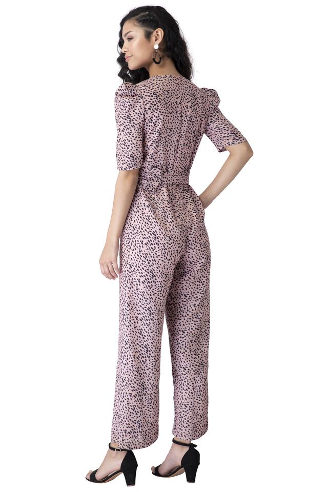 Pink animal print clearance jumpsuit, Animal Print Half Sleeves Georgette Womens Regular Length Jumpsuit clearance