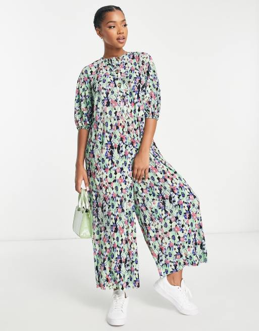 ASOS DESIGN plisse smock jumpsuit in floral print