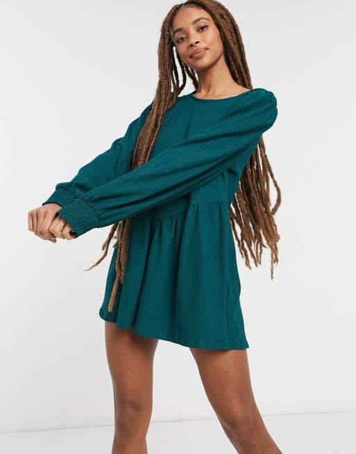 ASOS DESIGN button back puff sleeve playsuit in forest green