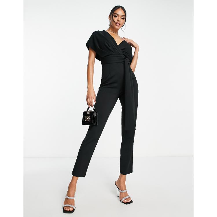 ASOS DESIGN Schwarzer Jumpsuit mit Bindeg rtel