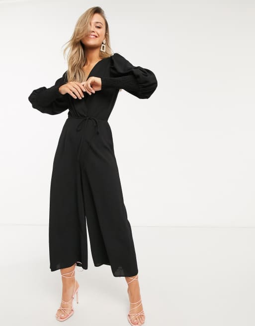 ASOS DESIGN Schwarzer Jumpsuit mit Wickeldesign und gekr uselten