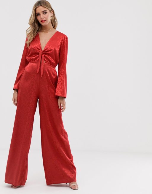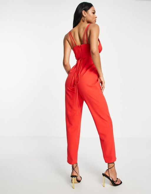 ASOS DESIGN Jumpsuit in Rot mit Riemchen tiefem Ausschnitt und Karottenschnitt