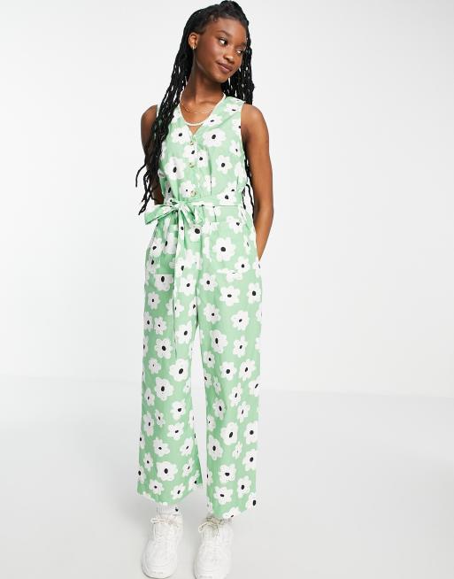 ASOS DESIGN button front jumpsuit in mixed green floral print