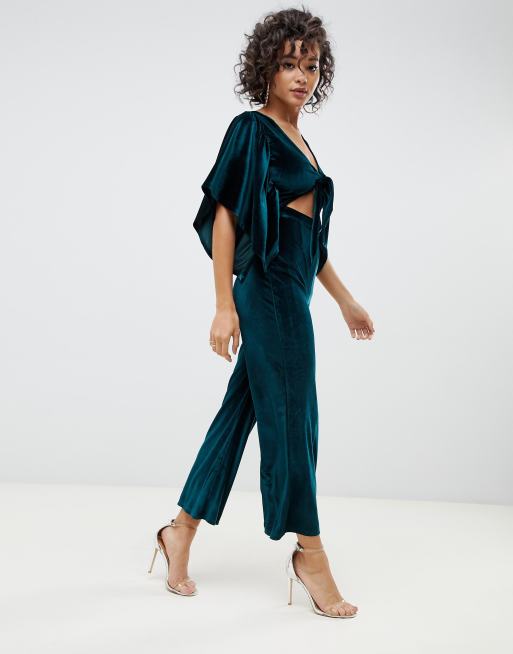 ASOS DESIGN kimono sleeve jumpsuit with tie in velvet ASOS