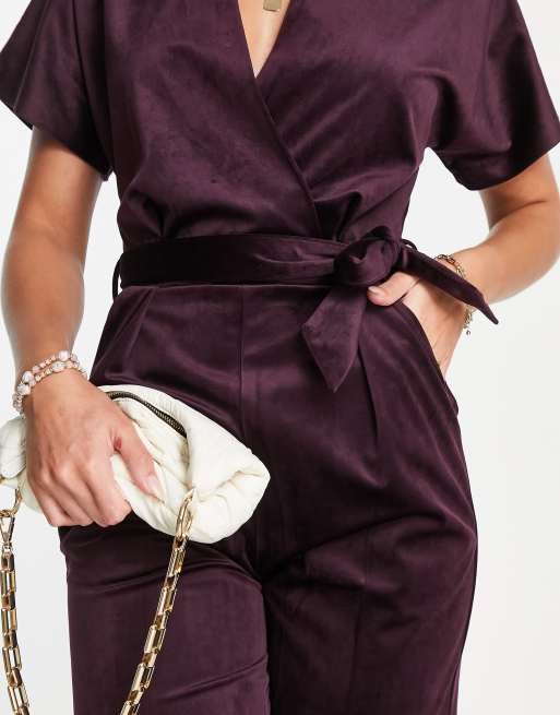Closet London Tall velvet wrap jumpsuit in plum ASOS