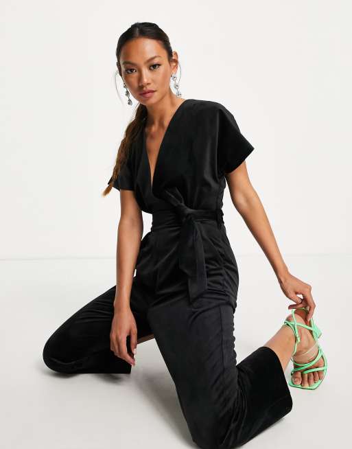Velvet clearance wrap jumpsuit, Pink Petite Velvet Wrap Stretch Jumpsuit Roman UK clearance