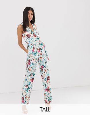 Little Mistress Tall wrap front jumpsuit in multi floral print ASOS