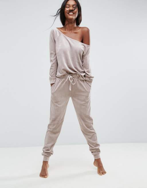 Velour off shoulder clearance jumpsuit, ASOS LOUNGE Velvet Velour Off Shoulder Sweat ASOS clearance