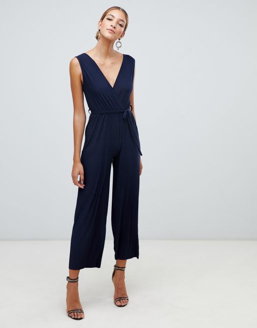 Boohoo clearance navy jumpsuit, Plus Pleated Chiffon Bardot Jumpsuit boohoo clearance