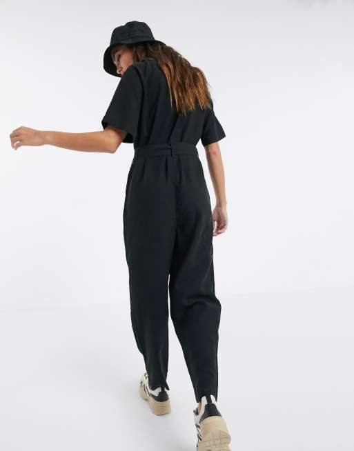 Monki utility jumpsuit with belt in black