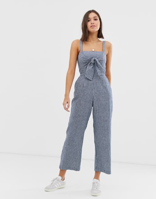 Abercrombie Fitch Striped Tie Front Linen Blend Jumpsuit
