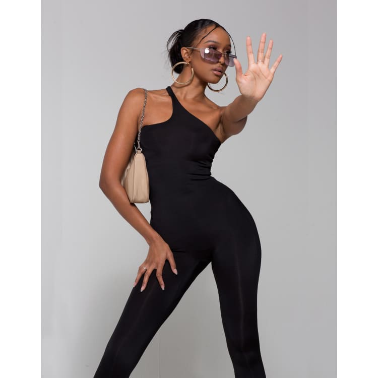 One shoulder lace clearance jumpsuit, WMNSwear one shoulder lace up back jumpsuit in black ASOS clearance