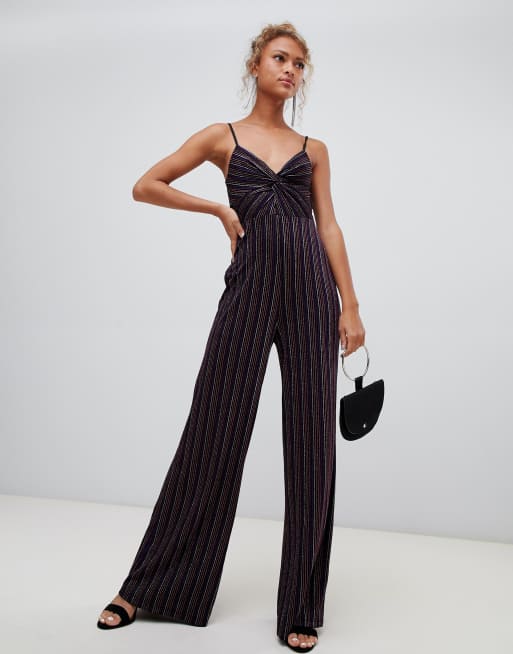 Black Glitter Stripe Front Twist Jumpsuit New Look