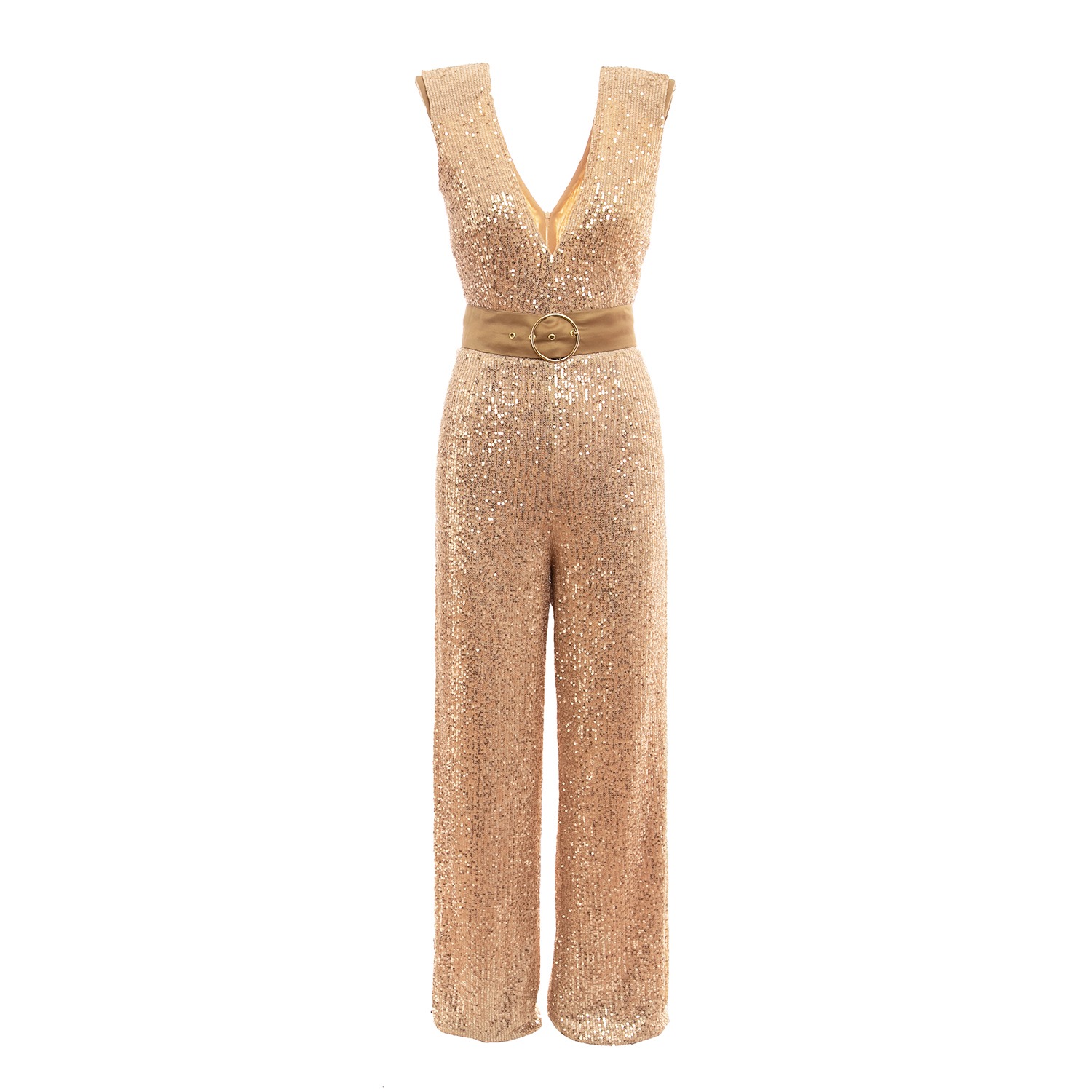 Sequin Gold Jumpsuit With Padded Shoulders by BLUZAT