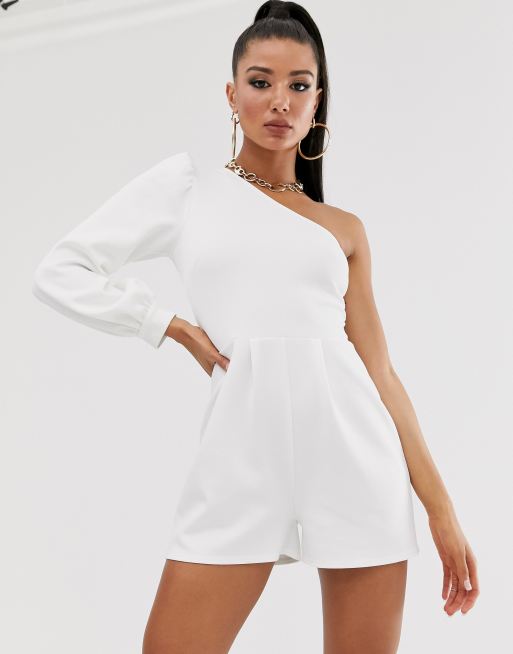 ASOS DESIGN one shoulder blouson sleeve playsuit