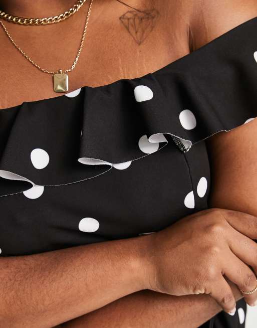 Polka dot bardot clearance jumpsuit, New Look Curve ruffle detail bardot jumpsuit in black polka dot clearance
