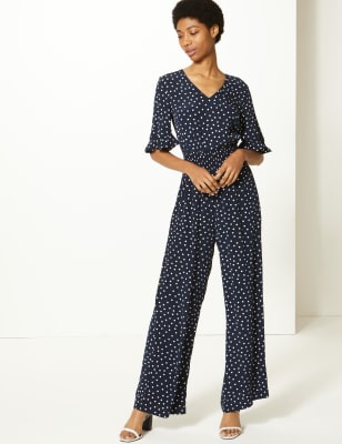 Polka dot jumpsuit clearance m&s, Polka Dot Tie Detail Waisted Jumpsuit Finery London M S clearance