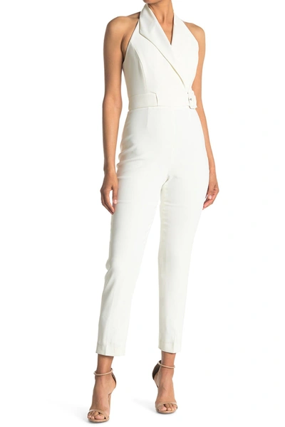 Belinda Belted Waist Tux Jumpsuit In White