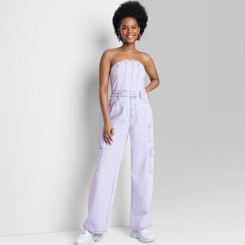 Women s Tube Cargo Denim Jumpsuit Wild Fable Lavender S Target