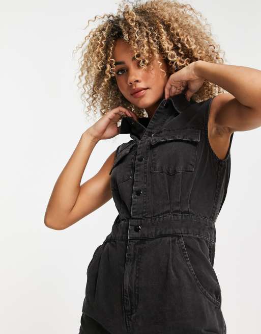 ASOS DESIGN sleeveless lightweight denim boilersuit in washed