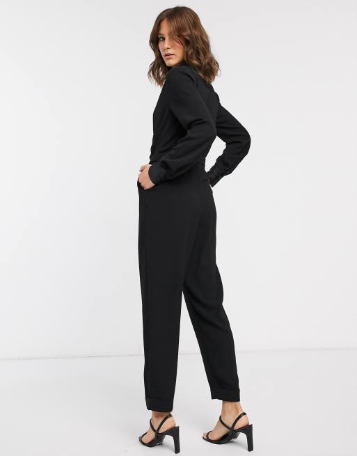 Rent Misspap Black Satin Tuxedo Wide Leg Jumpsuit Hirestreet