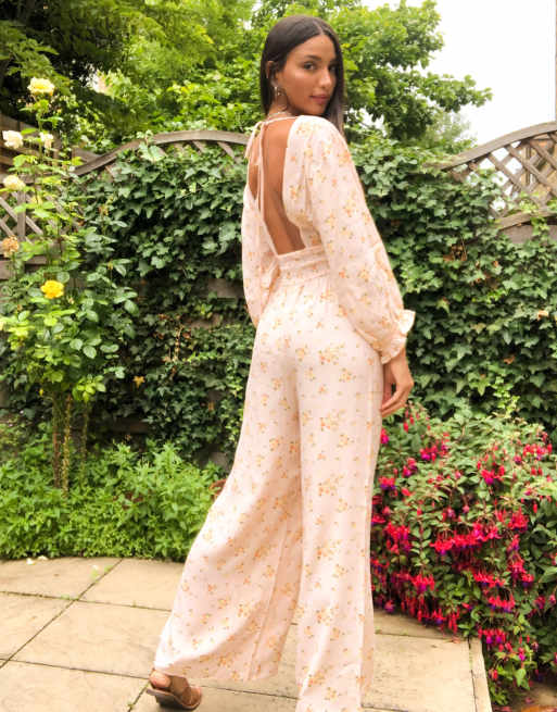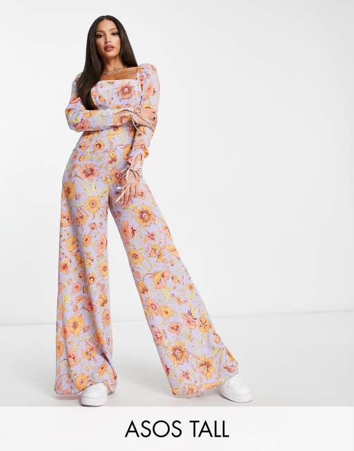 ASOS DESIGN Tall shirred waist jumpsuit in meadow floral print ASOS