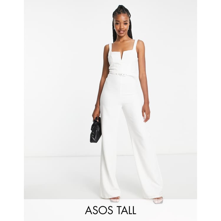 ASOS DESIGN Tall square neck jumpsuit with kick flare in white