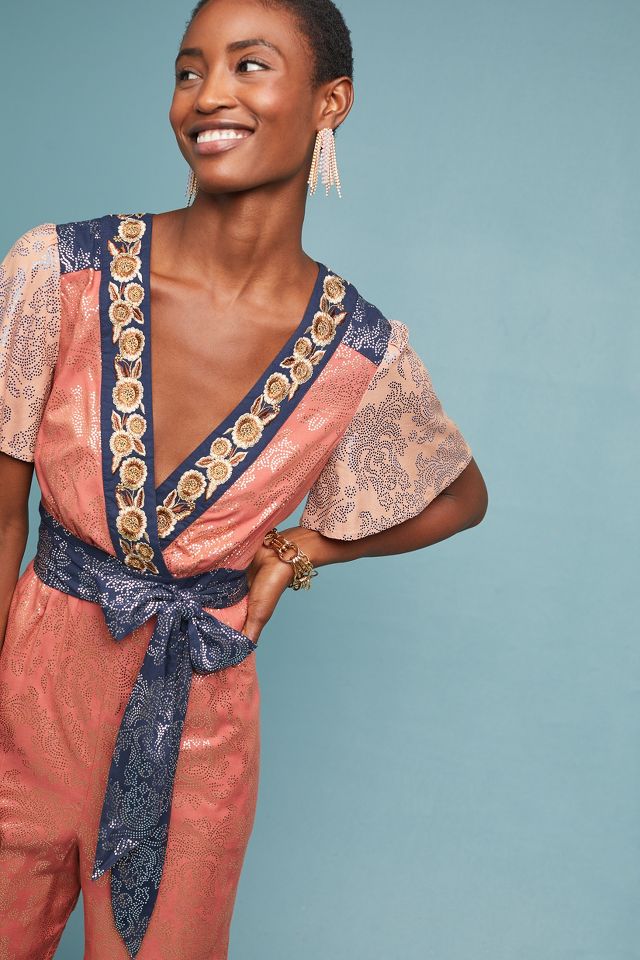 Anthropologie Akemi Kin Sofia Metallic Jumpsuit Size 8 eBay
