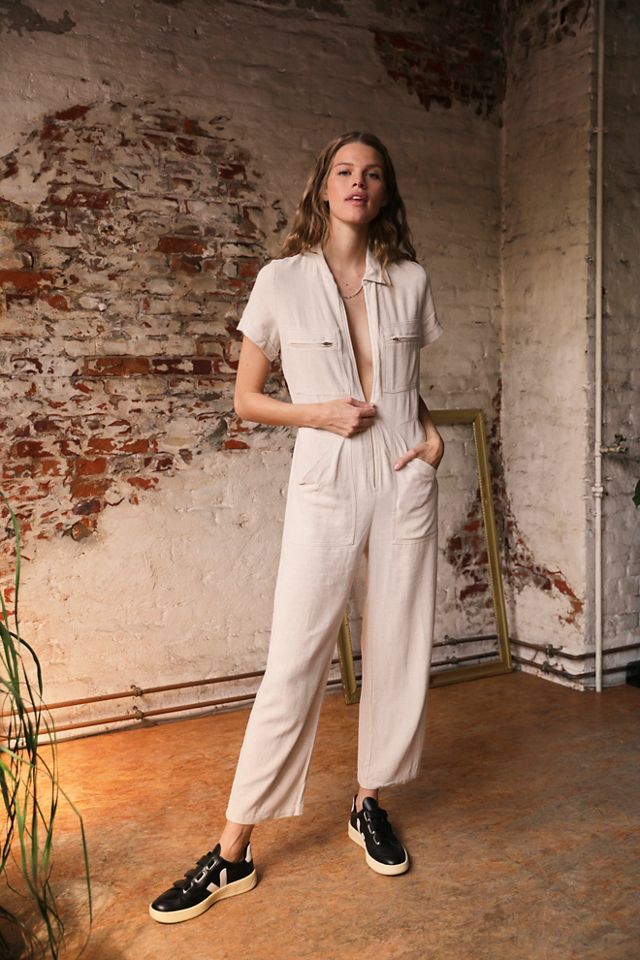 Free people linen clearance jumpsuit, NWT FREE PEOPLE Sz M PRETTY SIMPLE UTILITY JUMPSUIT WIDE LEG ONE clearance