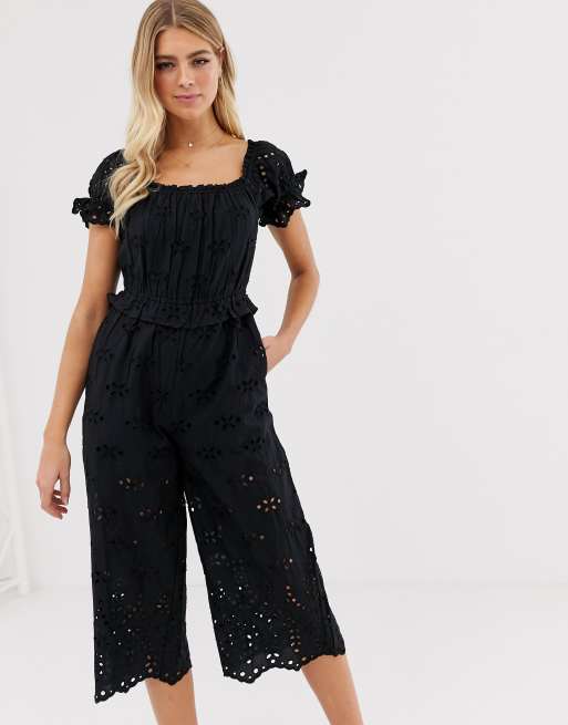 Miss Selfridge broderie jumpsuit with square neck in black