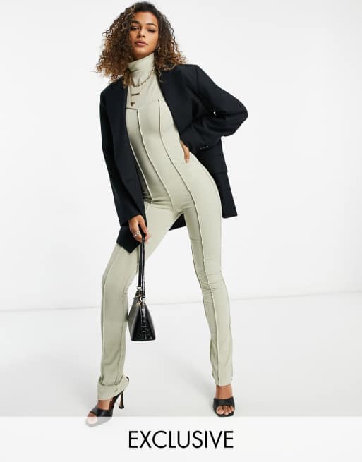 Jumpsuit clearance met blazer, ASYOU Jumpsuit met col en geaccentueerde naden in stone ASOS clearance
