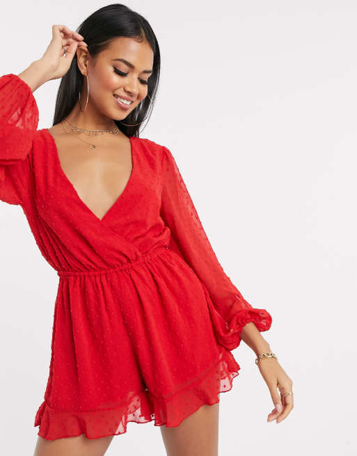 BOOHOO LADIES TIE STRAP DOBBY MESH PLAYSUIT RED NEW ref 372 SALE