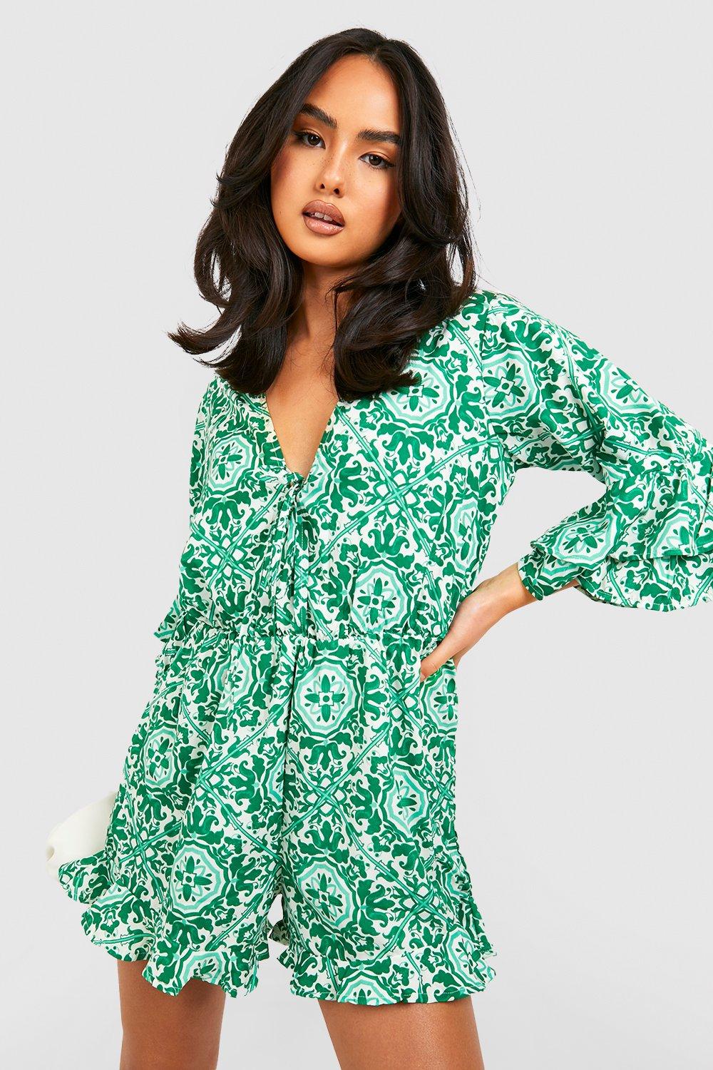 Boohoo clearance green playsuit, Floral Cut Out Playsuit boohoo clearance