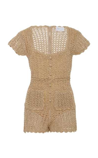 Alice McCall Hot Like Fire Playsuit In Metallic Gold Romper Crochet Kn
