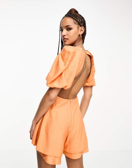 ASOS DESIGN ra ra playsuit with puff sleeve in bright orange