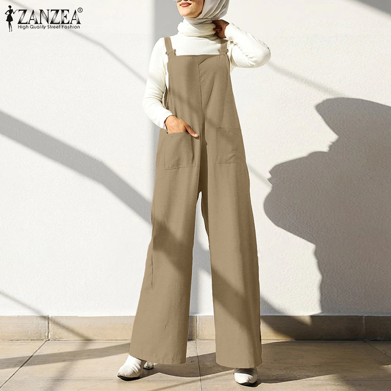 ZANZEA Women Casual Sleeveless Solid Wide Leg Loose Muslim