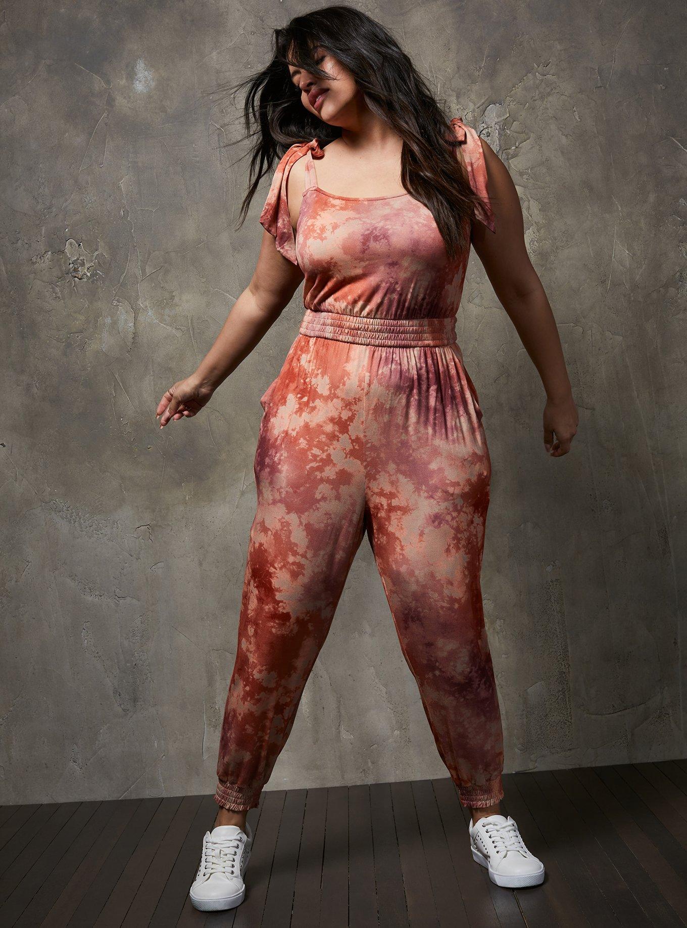 Tie dye jumpsuit clearance plus size, Plus Size Super Soft Tie Dye Pink Tie Strap Jumpsuit Torrid clearance