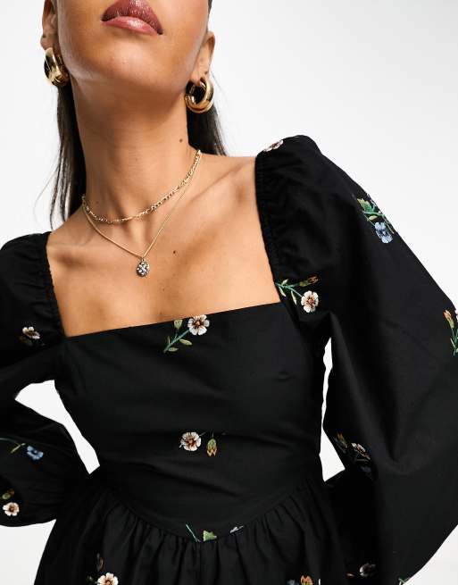 Tall Black Square Neck Button Front Belted Playsuit New Look
