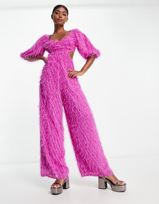 Jumpsuit magenta clearance, ASOS DEISGN fluffy metallic tea jumpsuit in magenta clearance