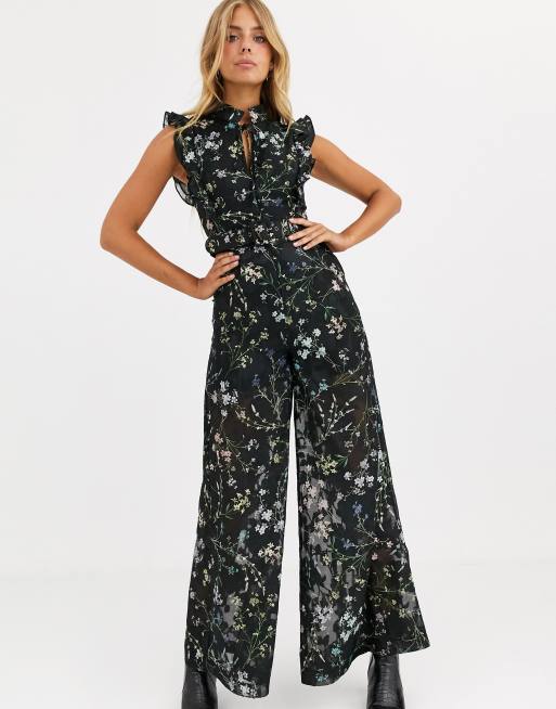 We Are Kindred Ambrosia frill sleeve floral jumpsuit