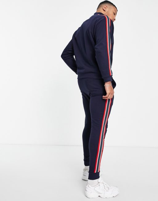 ASOS DESIGN tracksuit with side tape half zip sweatshirt in navy