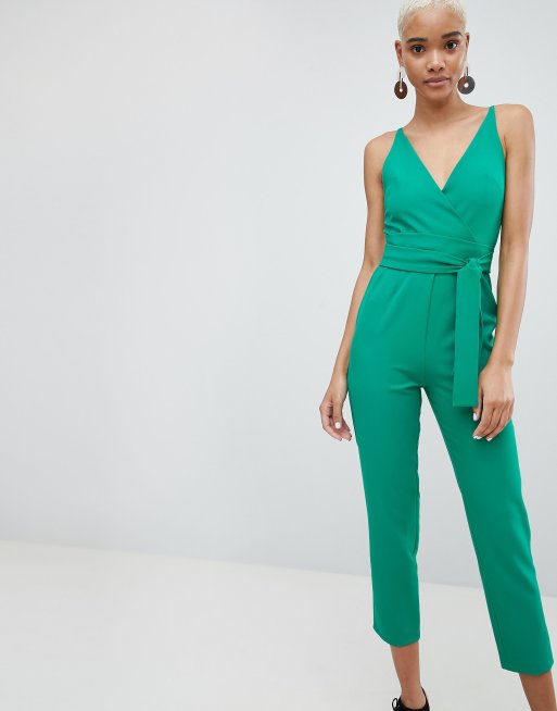 ASOS DESIGN Wrap Front Jumpsuit With Peg Leg And Self Belt ASOS