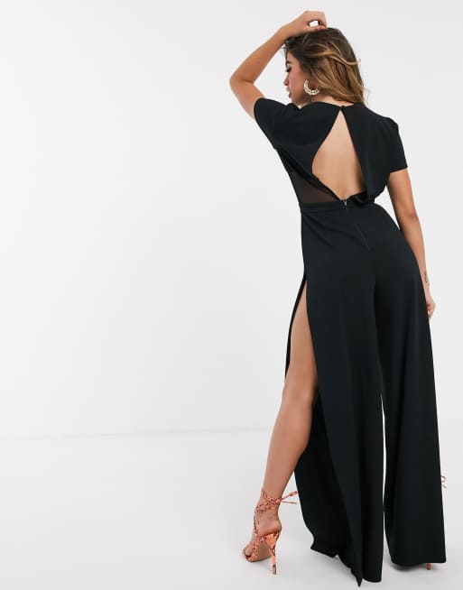 Side split leg clearance jumpsuit, ASOS DESIGN jumpsuit with mesh corset and split leg clearance