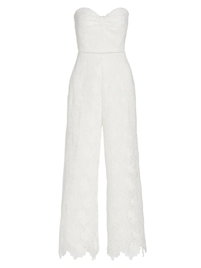 ml Monique Lhuillier Strapless Floral Lace Jumpsuit In White