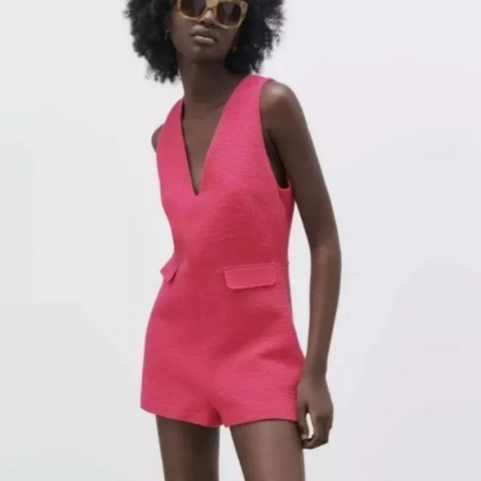 Zara Zara Playsuit Structured Tweed Jumpsuit Romper hot pink Grailed