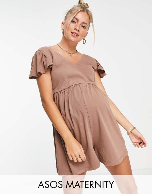 ASOS DESIGN maternity frill sleeve smock romper in rust ASOS