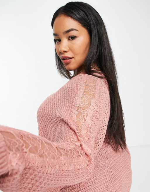 Pink clearance lace jumper, Ruche Lace Sleeve Soft Touch Jumper Apricot Clothing clearance