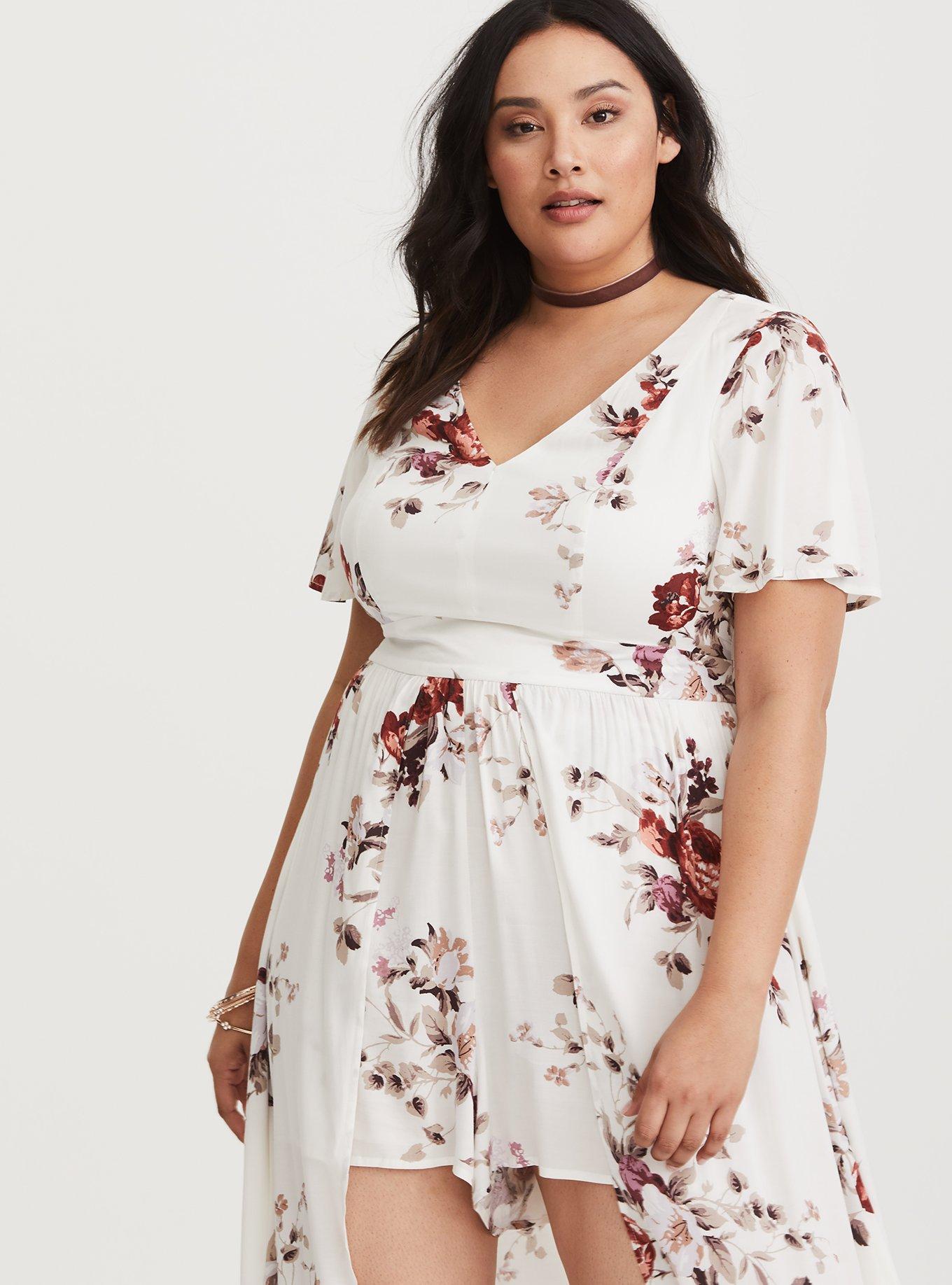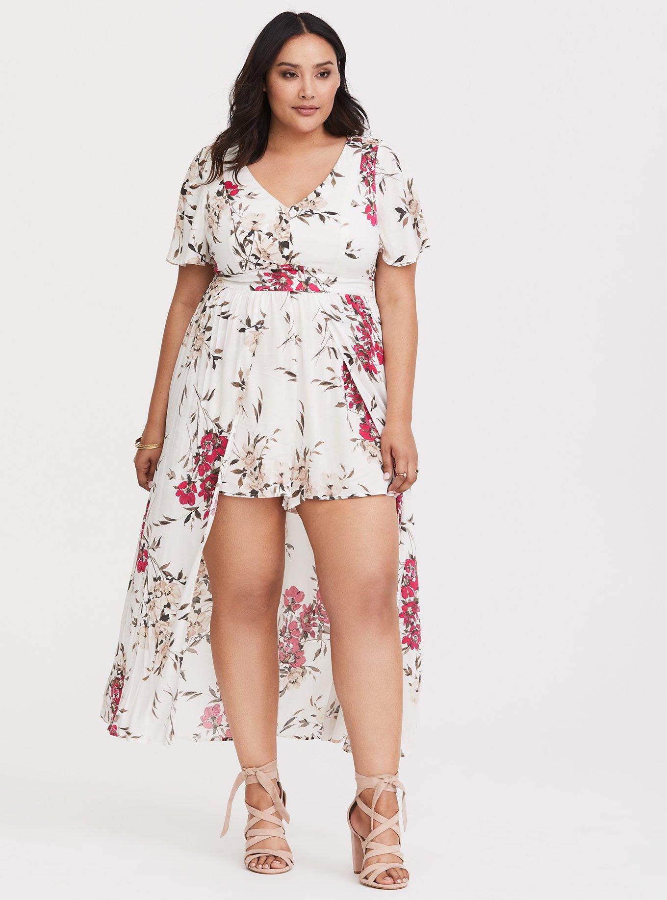 Plus Size White Floral Challis Overskirt Romper Torrid