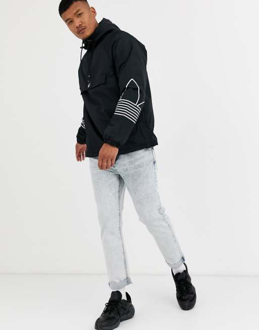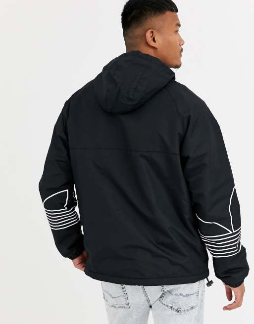 Adidas originals fleece lined overhead jacket clearance with arm trefoil print in black